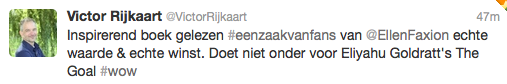Het idee van een managementboek in romanvorm sprak mij onmiddellijk aan en het bleek ook echt te werken. Ik heb het boek in één keer uitgelezen en begon al tijdens het lezen automatisch de tips die de personages voor hun bedrijf kregen te vertalen naar mijn eigen situatie. De stappen naar het vinden en houden van ‘fans’ zijn heel praktisch en de hoofdstukken worden steeds afgesloten met concrete opdrachten (die de personages in het boek ook doorlopen). Omdat de drie personages allemaal in een andere situatie zitten, is het voor verschillende soorten ondernemers en managers herkenbaar. Inspirerend! Ik ga er zeker voor mezelf mee aan de slag.